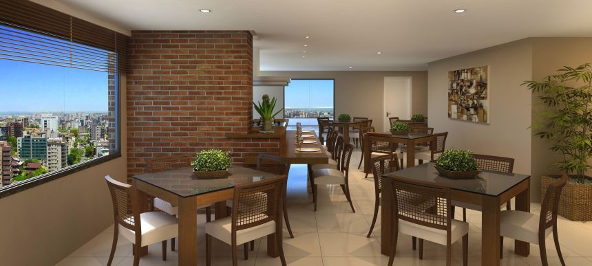 03 dormitórios (sendo 1 suite), bwc social, área de convivência, cozinha, área de serviço, sacada com churrasqueira e duas vagas de garagem.