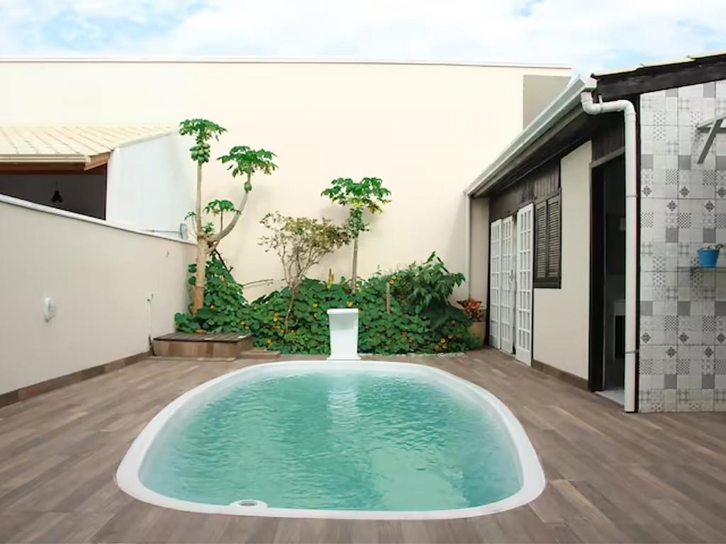 Com varanda com vista para a piscina, piscina ao ar livre e jardim, Casa com piscina em Floripa fica em Florianópolis, perto de Praia da Cachoeira do Bom Jesus. Praia da Ponta das Canas fica a 2,2 km. Com estacionamento privativo grátis, a casa de temporada está em uma área onde você poderá participar de atividades como fazer trilhas, pescar e andar de bicicleta.