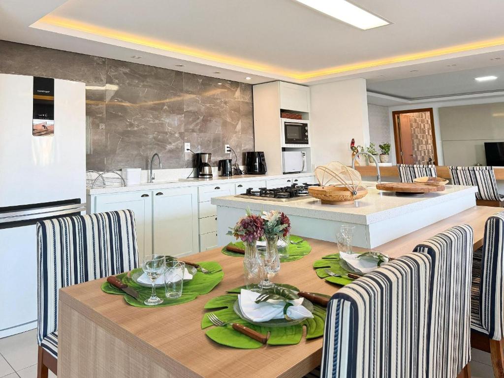 A casa de temporada conta com 4 quartos, uma cozinha com geladeira e forno, além de 4 banheiros com bidê, produtos de banho de cortesia e máquina de lavar roupa. A casa de temporada oferece toalhas e roupa de cama.