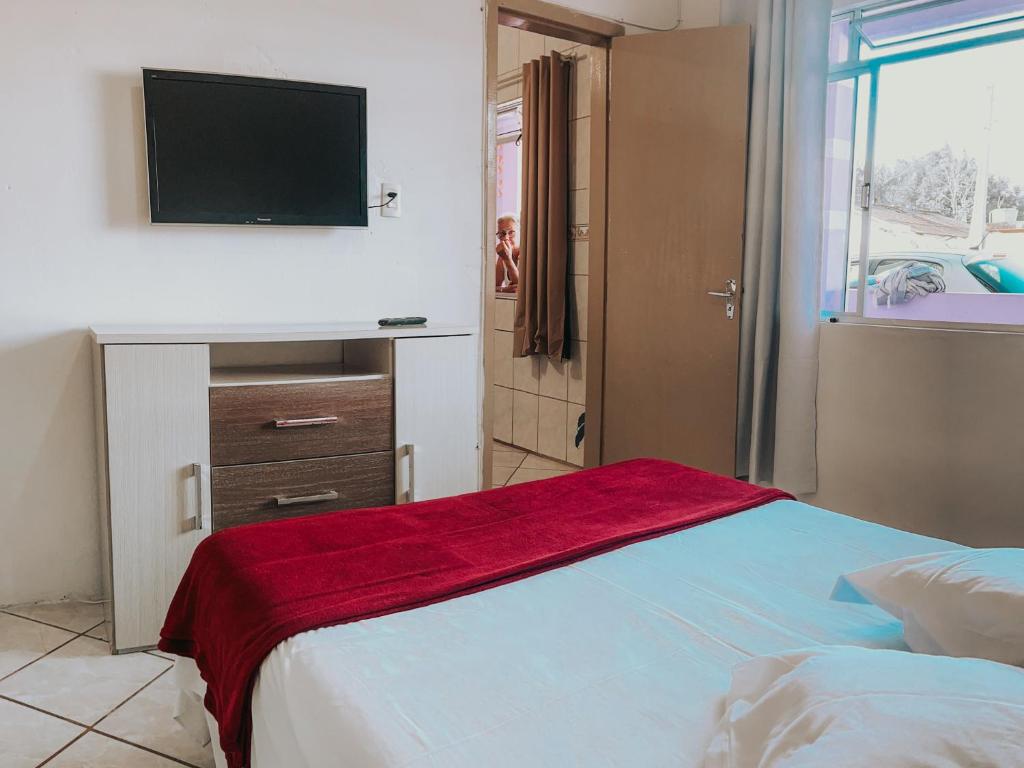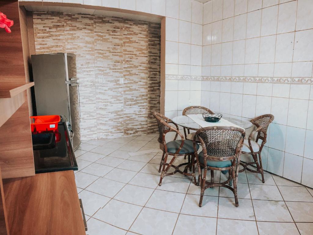 A casa de temporada tem 1 quarto, TV de tela plana, cozinha com geladeira e forno, além de 1 banheiro com chuveiro.