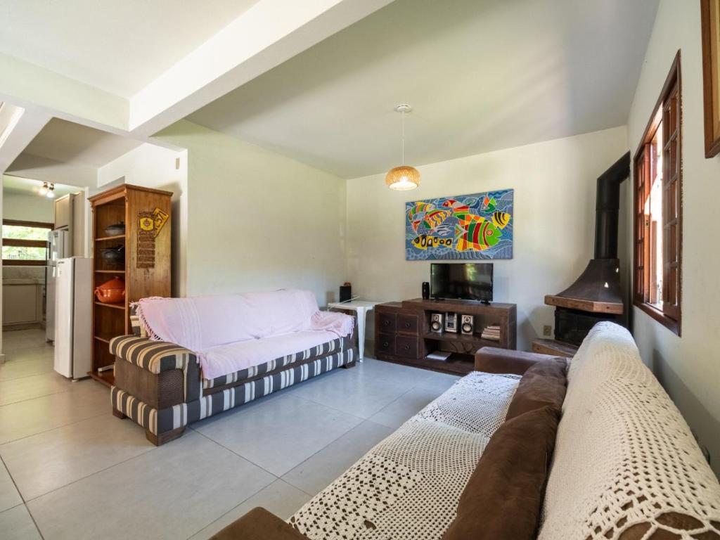 3 quartos, 6 pessoas, 600m da praia, churrasqueira, lareira no bairro Ponta das Canas em Florianópolis/SC